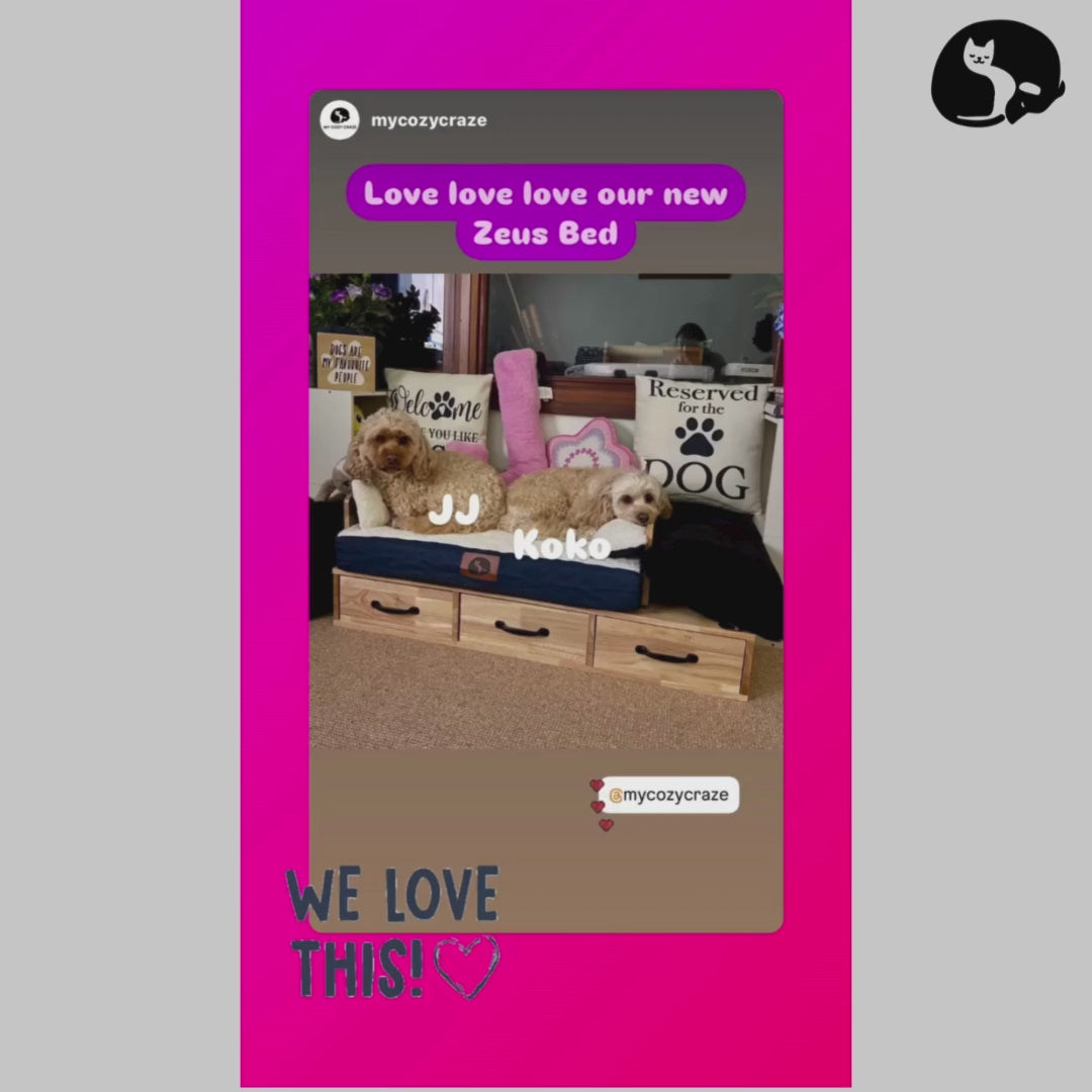 "The Zeus Bed is a game-changer! My dog, Lui, loves it, and the built-in drawers keep everything tidy. Highly recommend!"